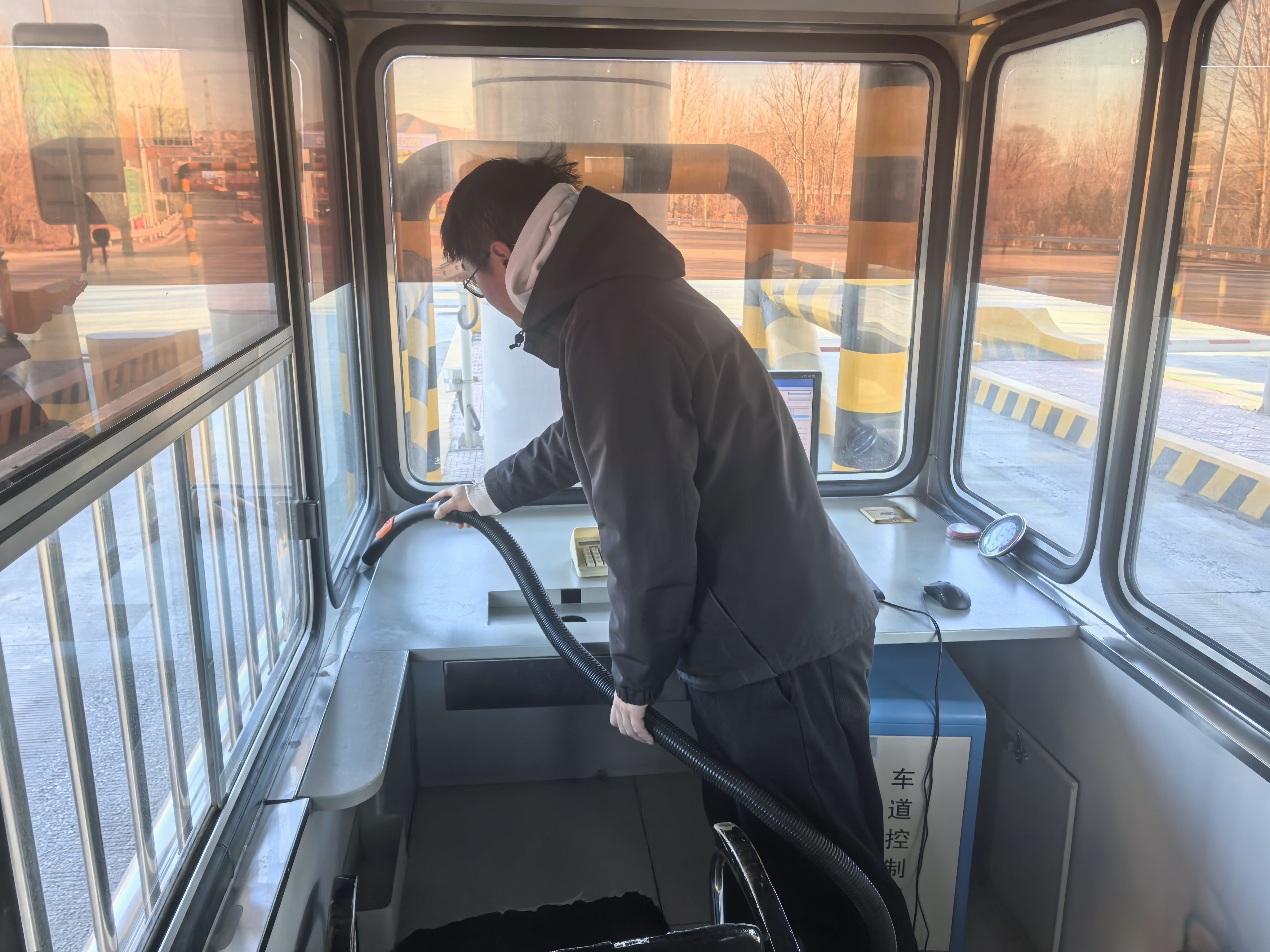 在日常运营中,只要有空闲时间,收费员们便会自发地对岗亭及车道卫生进行维护。他们会及时清理遗落的垃圾,去除污渍,时刻保持岗亭与车道的干净整洁。同时,还会对岗亭与车道周边区域进行巡查,清理车道上的杂物,确保车辆行驶安全顺畅。
