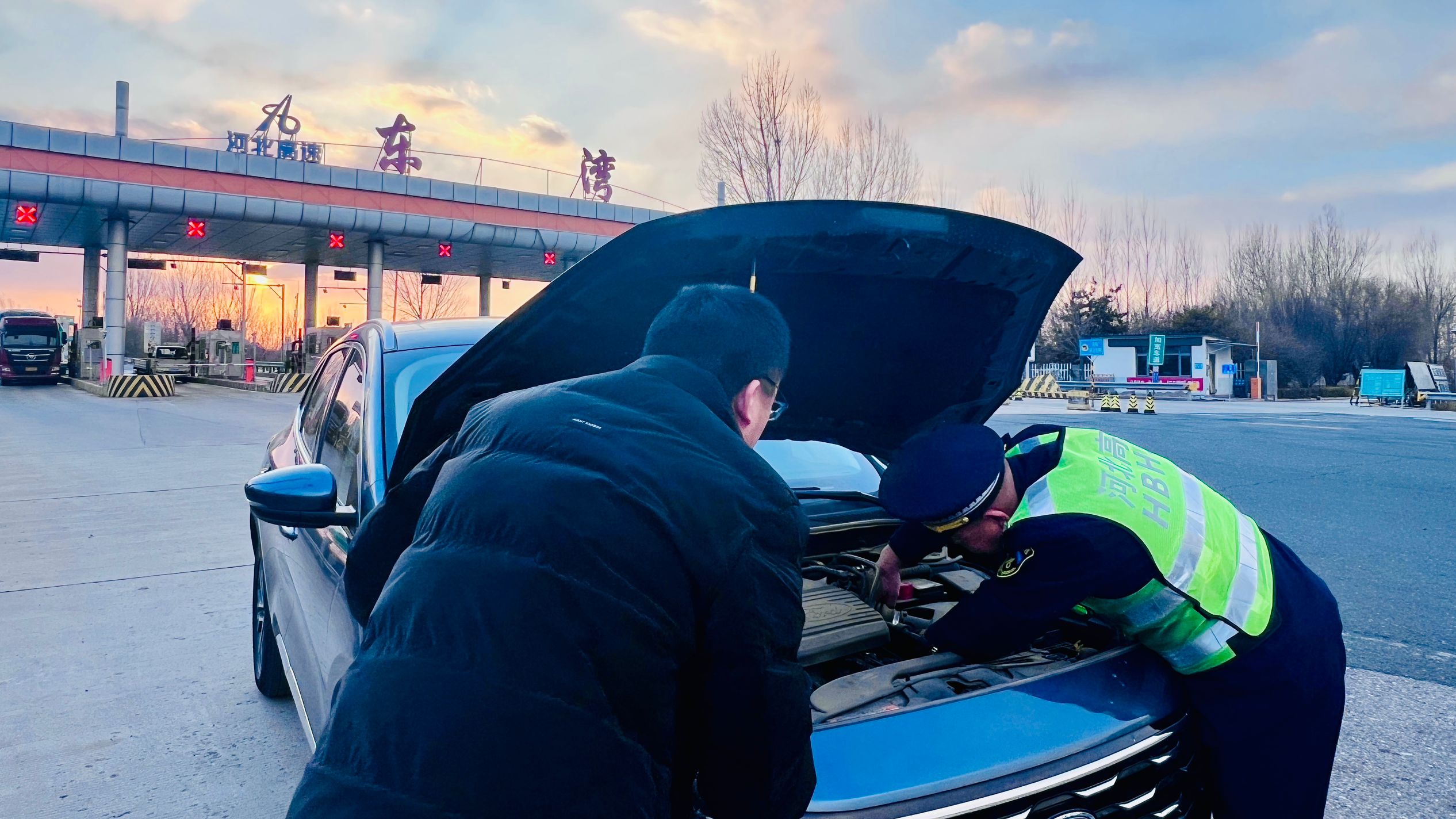 12月23日14时20分左右,一辆小车突然停在东湾收费站外广场,正在广场巡视的班长发现该车后,迅速上前查看。经询问得知,该车因水温过高,发动机无法正常启动,被迫停在外广场。正当司机无计可施时,班长主动伸出援助之手。在请示值班站长并经司机同意后,当班班长从站区拿来修车工具帮助司机检修车辆。经过一个多小时的检修,小车水温表及发动机终于恢复正常,司机激动地连连表示感谢:“真的太谢谢你啦!要是没有你们热心帮忙,我真不知道该怎么办了。”说着连忙从后备车厢掏出一瓶水递给班长,此时全身汗水湿透、满手油渍的班长笑着摆摆手表示:“这是我们高速人的职责和使命,不用客气。”说罢转身又回到了收费岗位上。