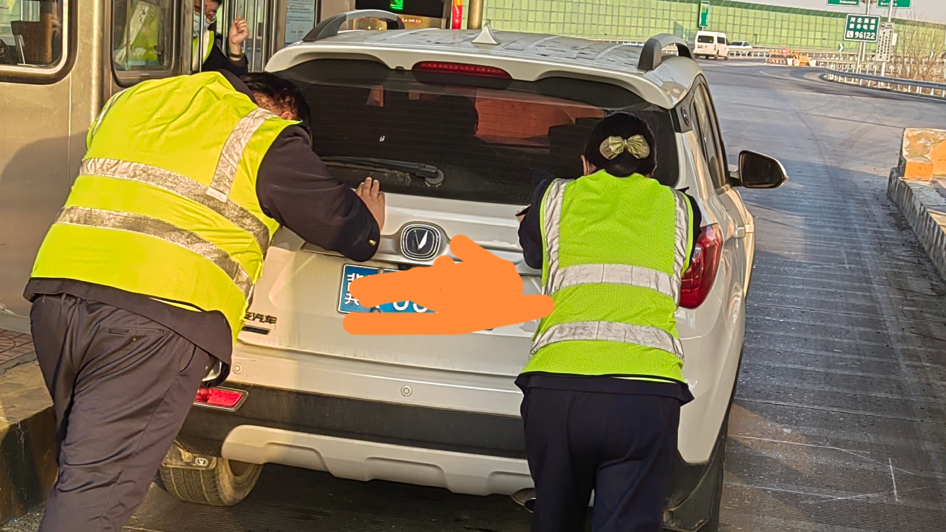 廊坊分公司燕郊西收费站:暖心服务司乘 推车助力启动