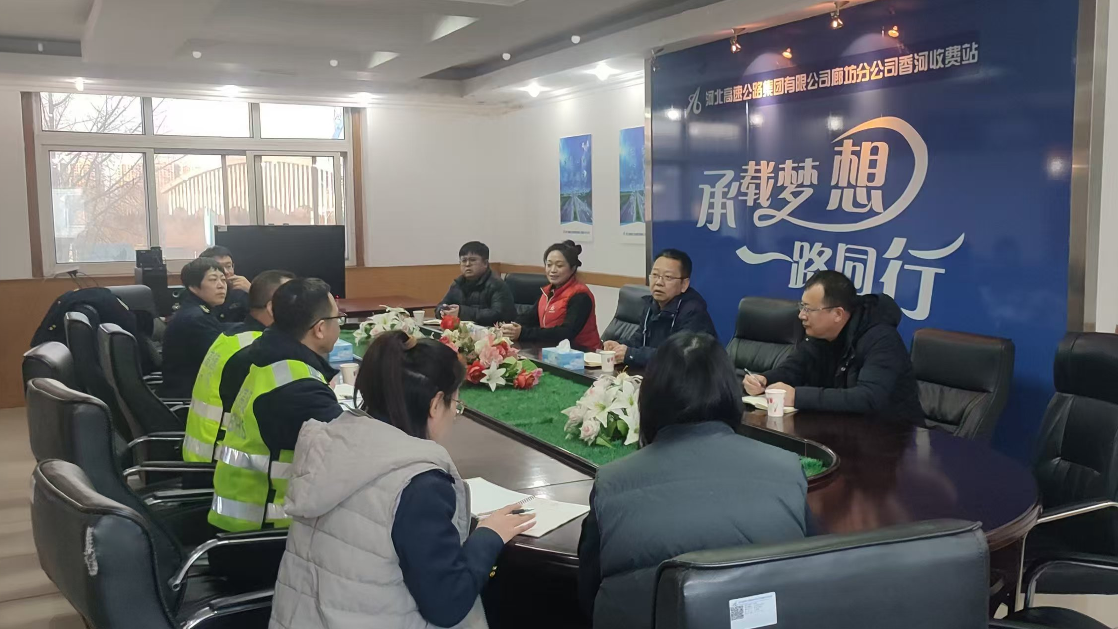 1月7日下午,廊坊分公司副总经理刘波到香河收费站进行今冬明春安全生产和自然灾害风险隐患排查整治专项督导检查,廊坊分公司工会办主任李坤、机电管理中心主任张永及有关人员陪同。