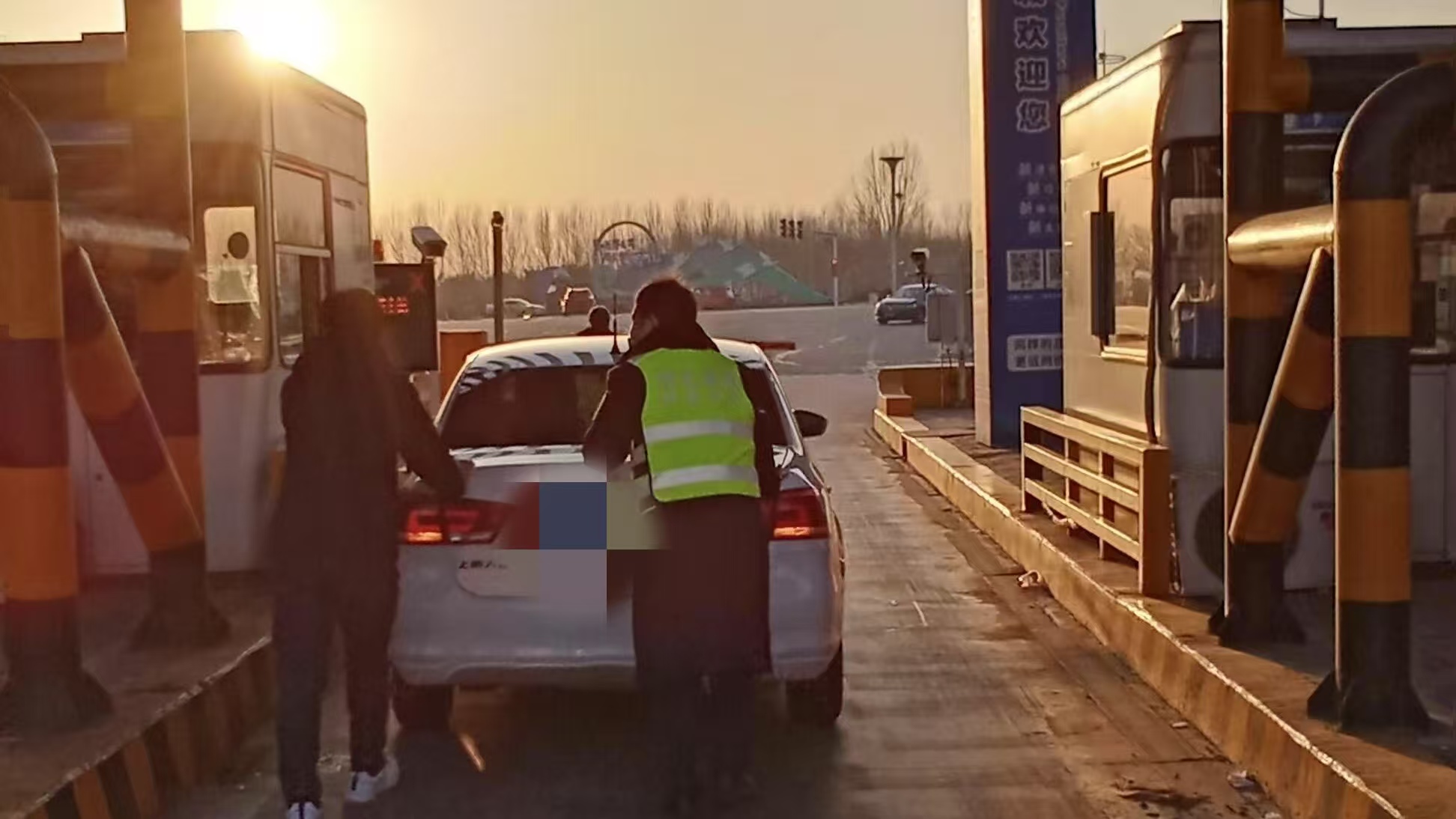 疏导的收费员迅速赶到现场,让司机上车把握好方向盘,他在车后用力推车。车辆缓缓地从车道推到了收费广场。推完车后,收费员累得气喘吁吁、满头大汗。司机感激不已,连连道谢:“太感谢你们了,要是没人帮忙,真下不来高速。”收费员微笑着回答道:“这是我们应该做的。”随后又提供了附近的修车电话,在车辆后方码放好了反光锥,才返回车道继续疏导工作。
