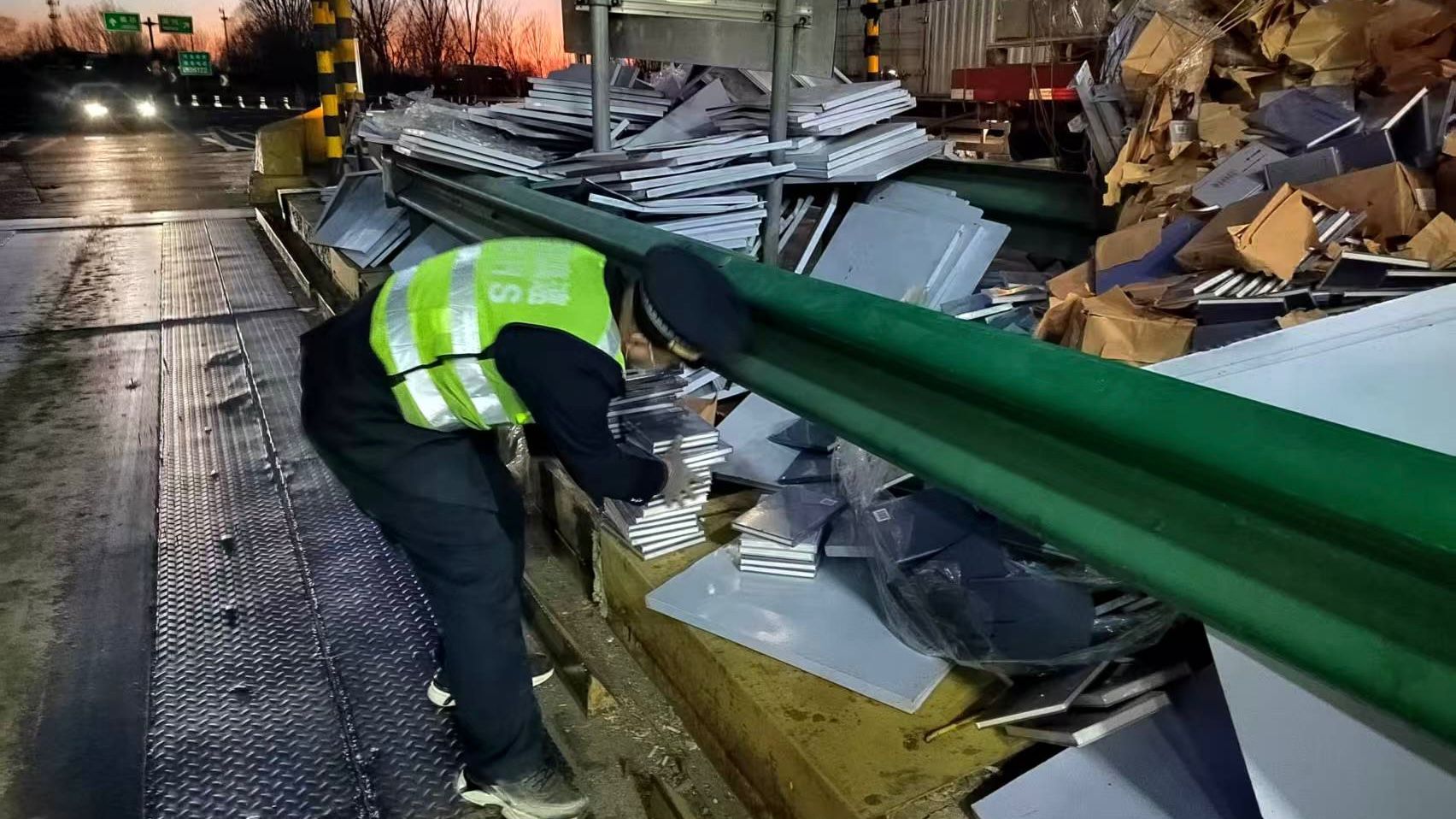 当日17时30分左右,一辆满载钢架构的货车缓缓驶出车道,突然,车上货物散落一地。司机听到声响后,迅速停车,面对满地狼藉,瞬间慌了神。他既担忧货物受损,又害怕阻碍交通。 此时正在广场巡视的收费员发现情况后立即前来查看。为保证后方来车安全,收费员先在车辆和货物后方摆上警示反光锥,确保其他车辆的安全通行,随后又叫来备岗人员帮助司机一起将掉落的钢架构重新装车。尽管货物沉重,天气寒冷,但为了尽快将散落货物装上车辆,恢复站口畅通,收费人员顾不上冻僵的双手,竭尽全力将散落货物在最短时间内全部装回了车上,并重新固定好。临走前,看到收费人员冻得通红的手和脸,司机连连道谢,感激不已。