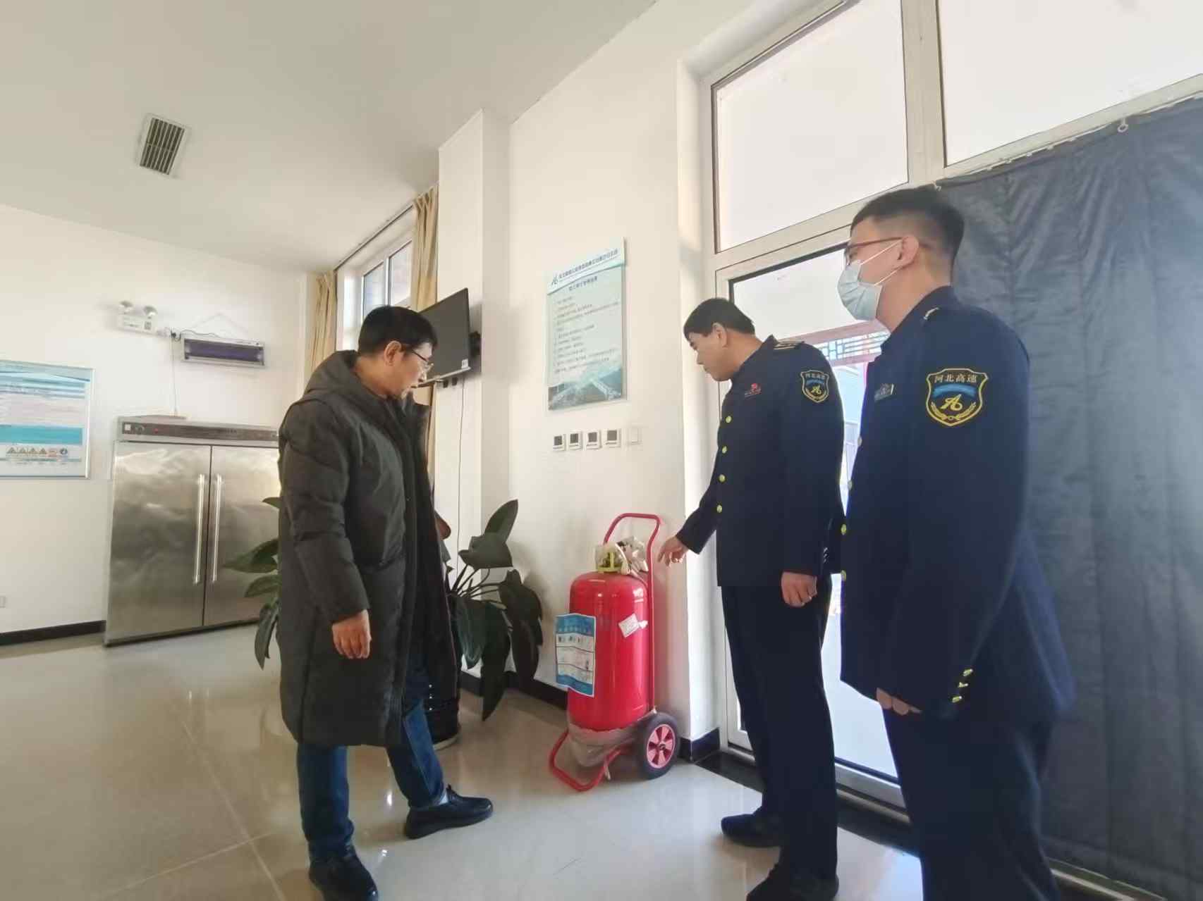 1月16日上午,廊坊分公司纪委书记张强到三河南收费站督导检查安全生产工作,纪检监督室主任王海涛、办公室副主任田玉龙陪同。