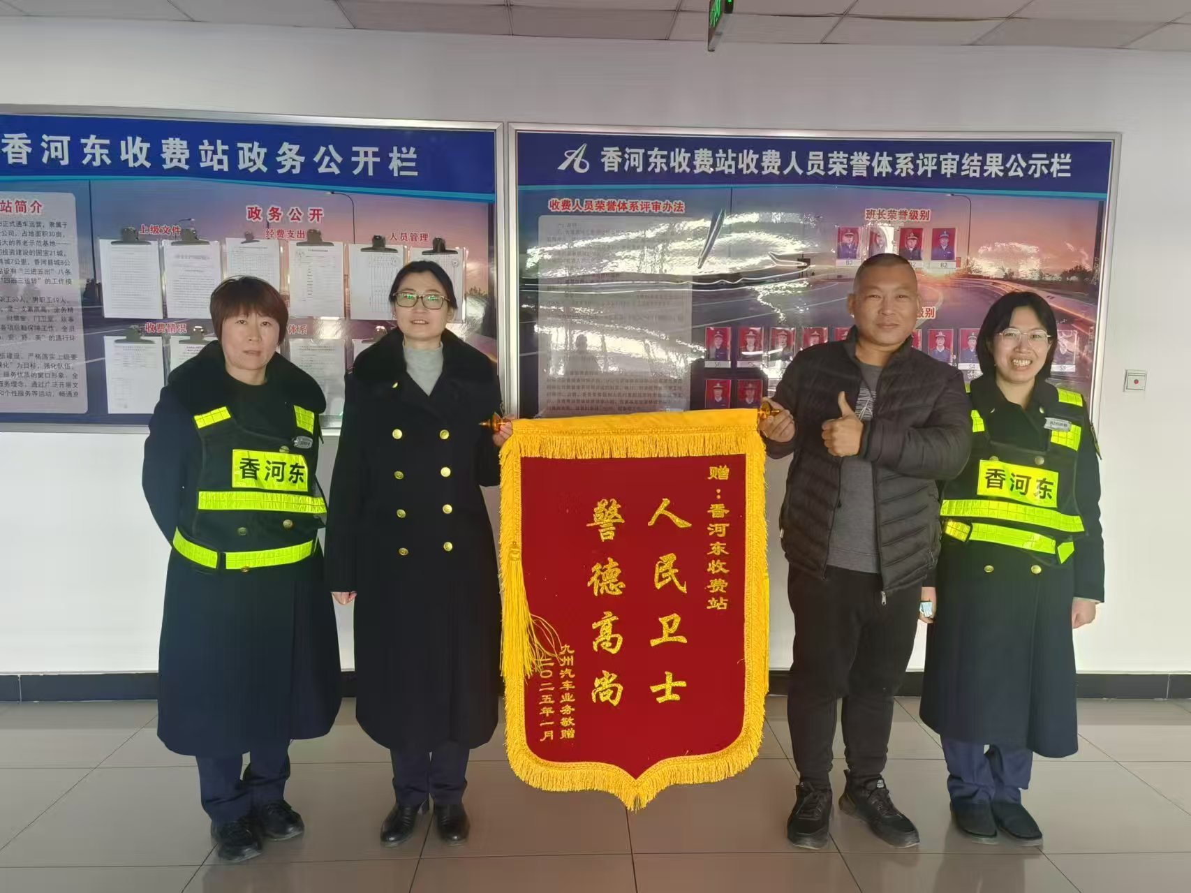 近日,九州汽车业务公司负责人专程来到香河东收费站,代表公司全体职工送上一面印有“警德高尚 人民卫士”的锦旗,感谢香河东收费站职工及时施救。这背后,是一场争分夺秒、惊心动魄的灭火救援行动。