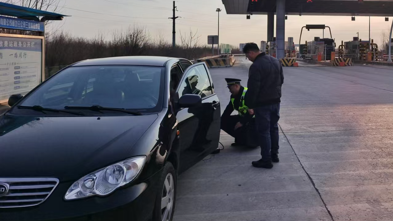 廊坊分公司三河南收费站:暖心助力 解胎压之急