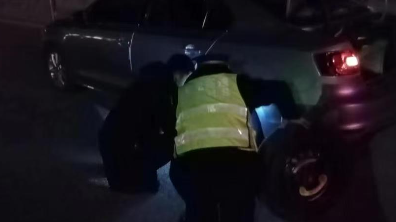 2月22日20点左右,一辆小客车缓缓驶入蒋福山收费站出口。司机满脸焦急,说车在高速上仪表盘上突然胎压灯亮了,检查后发现后轮胎扎了本想自己换胎,却发现没带千斤顶,便就近下高速,到收费站寻求帮助。