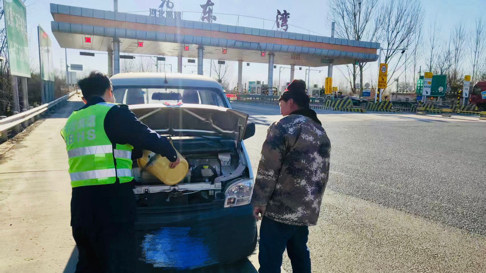 2月26日13时许,一辆小货车驶入东湾收费站,司机满脸焦急地向收费员求助,称车辆的防冻液已漏完,希望能在收费站先加点水后在进一步找维修厂进行处理。面对这一突发状况,司机显得手足无措。
