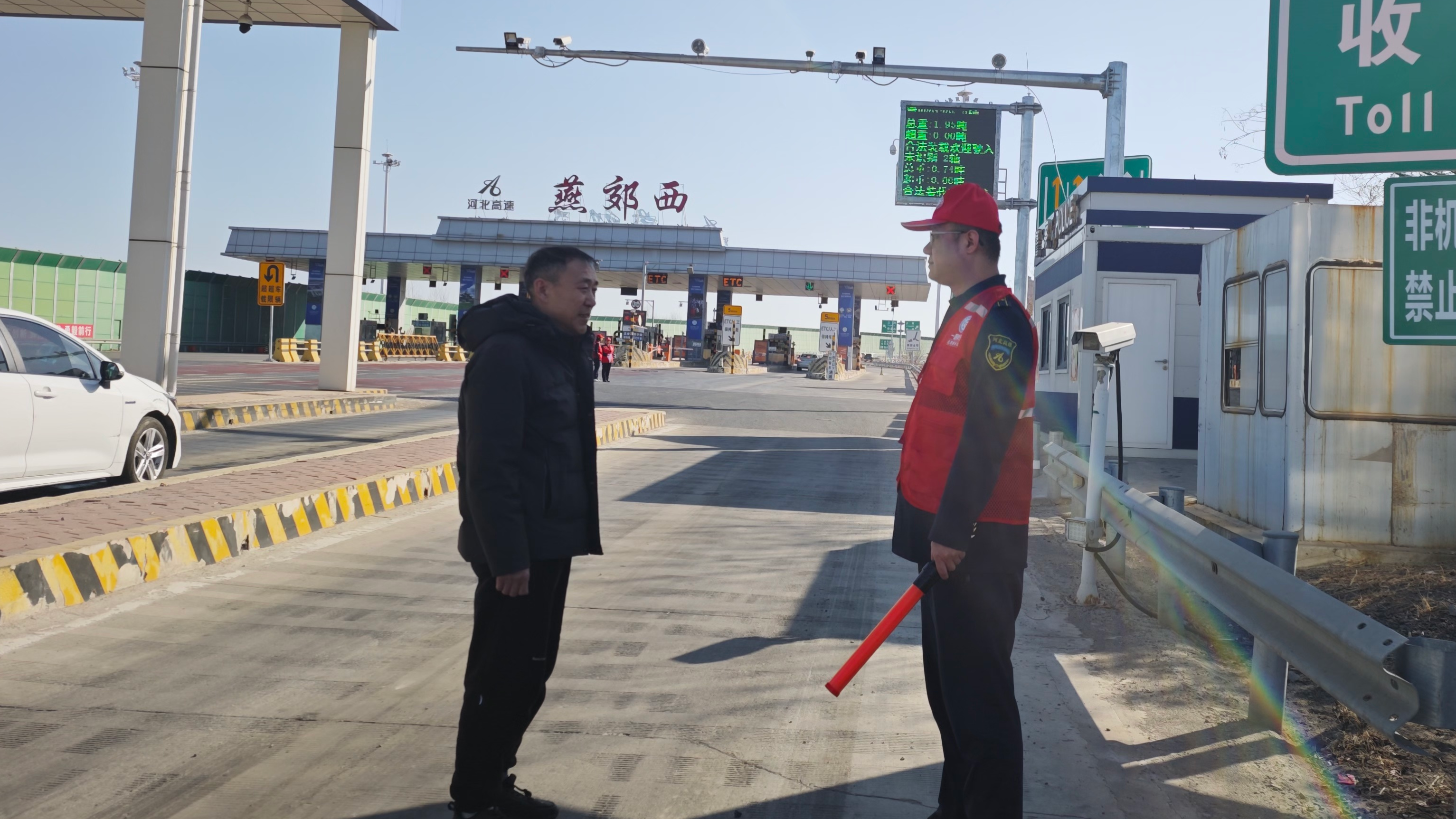 劝阻行人,普及安全知识。面对在川流不息的车流中出现的行人,志愿者积极劝阻拦截,并耐心宣贯非机动车及行人上高速的危害,提醒大家遵守交通规则,燕郊西收费站志愿者用实际行动守护大家出行安全。
