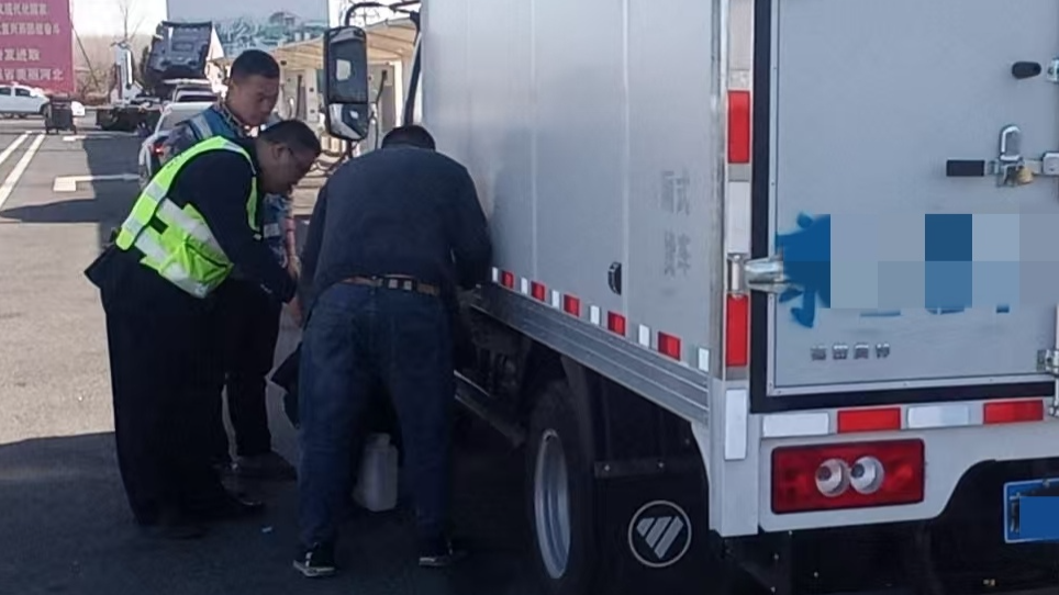 3月17日8时35分,一辆蓝牌货车在驶离香河西收费站出口车道后突然熄火,司机面露焦急,匆忙向收费站工作人员求助。经了解,原来是车辆燃油耗尽。