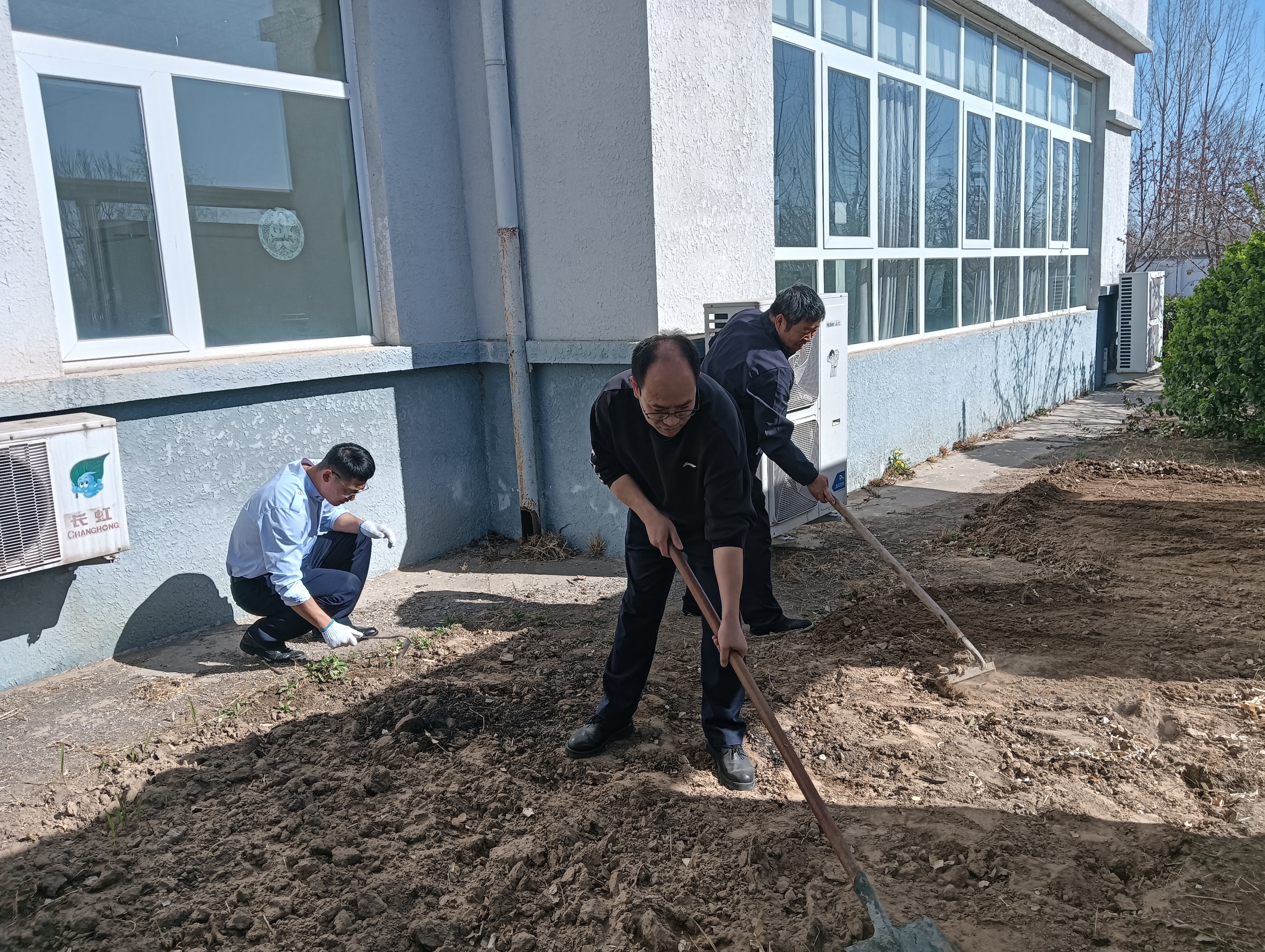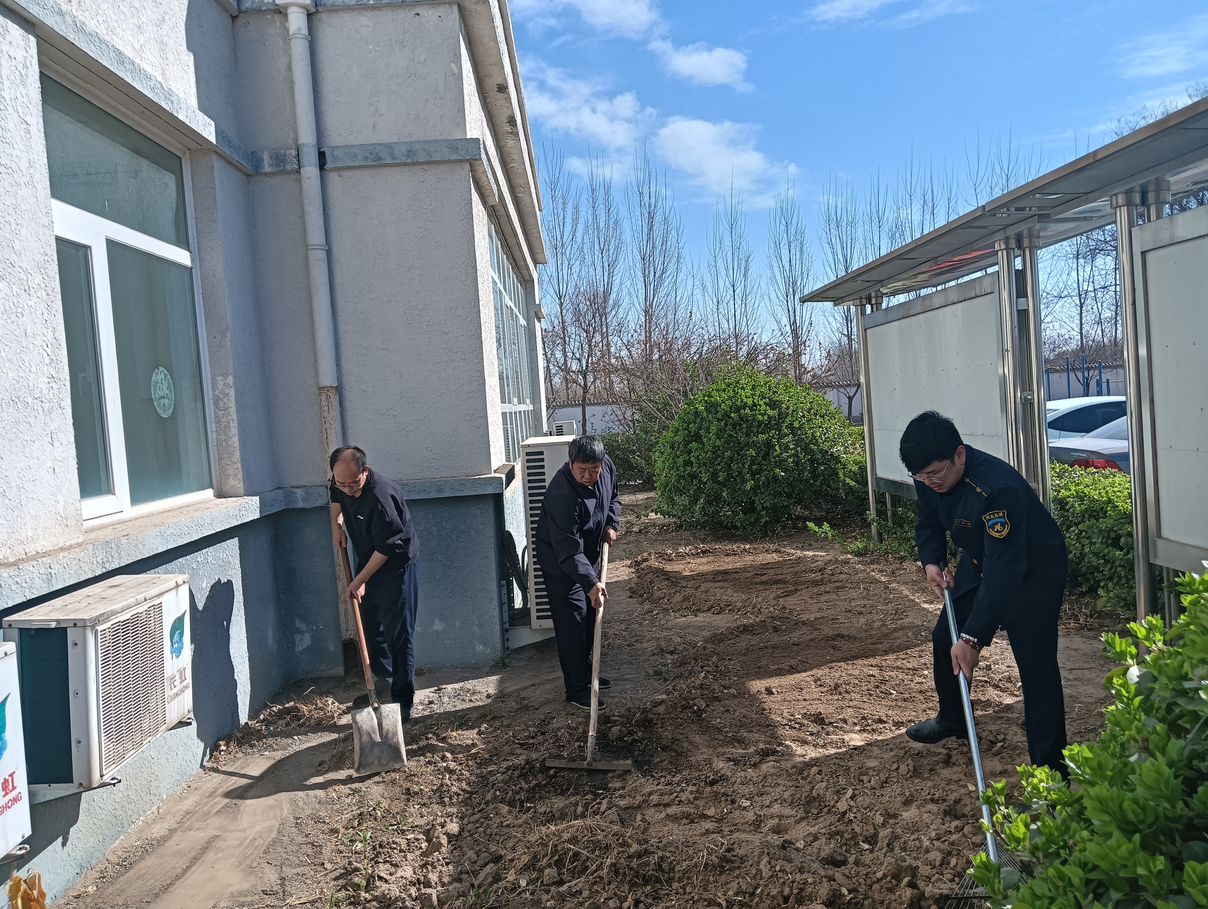 3月25日,在站长马国光的带领下,在站职工来到事先规划种花的区域。有的负责清理场地,拔除杂草,翻耕土壤,一锹一锹,将板结的土地变得疏松;有的专注于开挖垄沟,按照规划,挖出宽度、深度合适的垄沟,为花卉安家做好准备;有的将准备好的花种按照喜光性和植株高矮进行分类,在挖好的垄沟内细心播撒花种。完成种植后,浇缓苗水至关重要。采用喷灌方式,精准调控水压与喷头高度,有效避免水流冲散种子。经过一个多小时的努力,宿办楼前的草地种下了“希望的种子”,这里即将变成站区的小花园。大家擦着汗想象着不久后花团锦簇的样子,脸上洋溢着快乐的笑容。