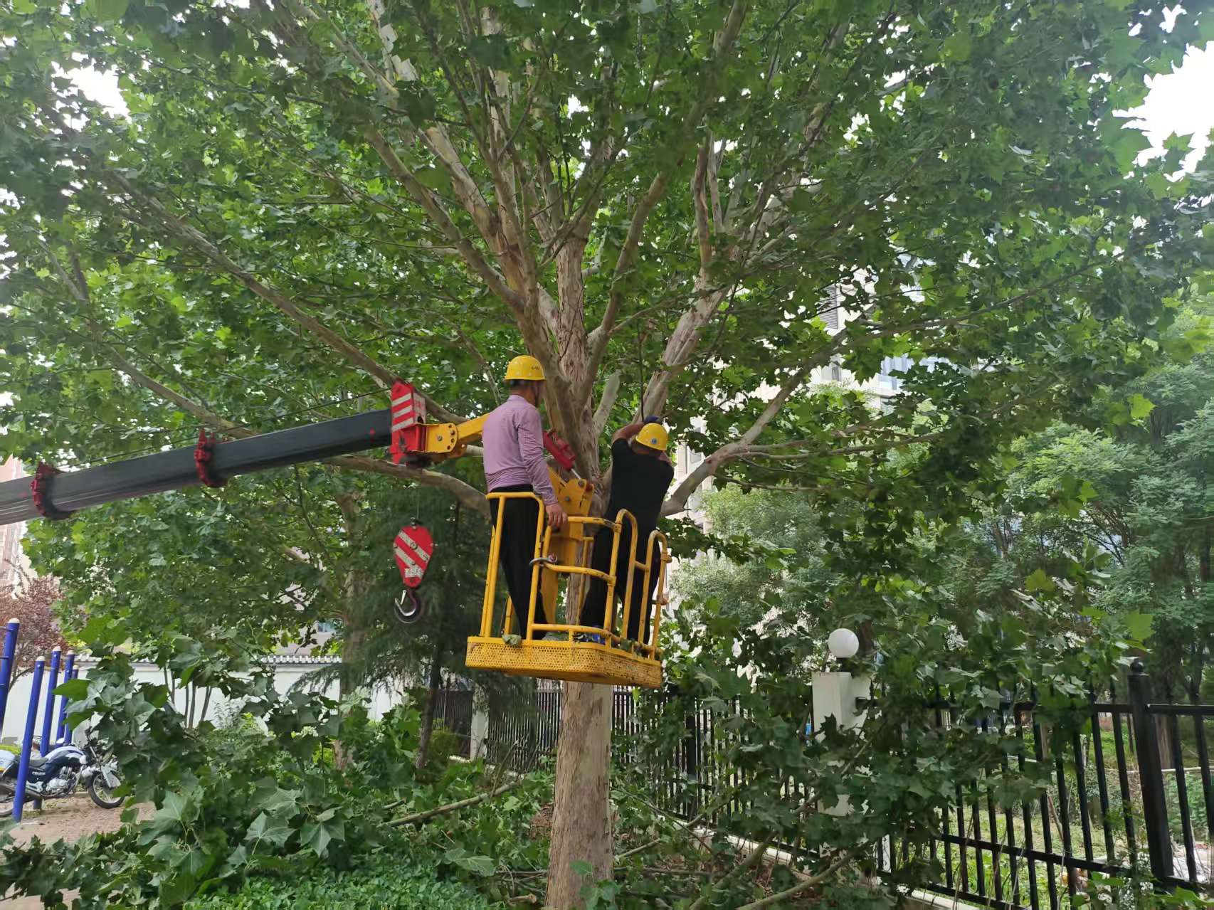 针对院区里的高大乔木,修剪人员采用高枝锯等工具,对枯枝、病枝、过密枝等进行了清理和修整。在修剪过程中,他们严格遵循树木的生长习性和修剪原则,既保证了树木的健康生长,又使其树形更加美观、整齐,增强了树木的通风透光性,促进树木健康生长。