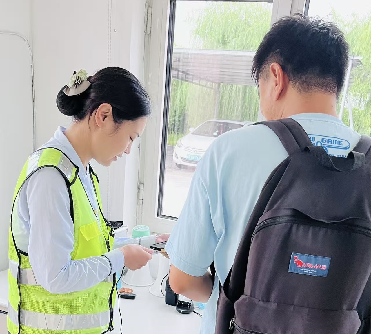 8月12日上午,当班班长日常巡查时,发现收费站外广场一名男子神情焦虑、举止无助,便主动询问。了解到该男子是返乡大学生,因顺风车司机失信无法联系家人,且手机没电,处境困难。考虑天气炎热和安全,班长将其引导至便民服务室,调配充电设备充电,协助联系家人。约一小时后,家属赶到,对万庄收费站工作人员的责任感和服务表示感谢,高度评价其工作作风。班长称这是应尽的责任,展现了基层工作者服务人民、奉献社会的精神。