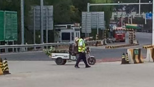 8月30日,三河东收费站入口车道前方有一位老人骑着三轮车向入口驶来。入口值岗的工作人员立刻用对讲喊来值班班长,值班班长立即拦住老人,并护送老人穿越车道到达对向安全区域,耐心向老人解释行人非机动车不允许上高速。