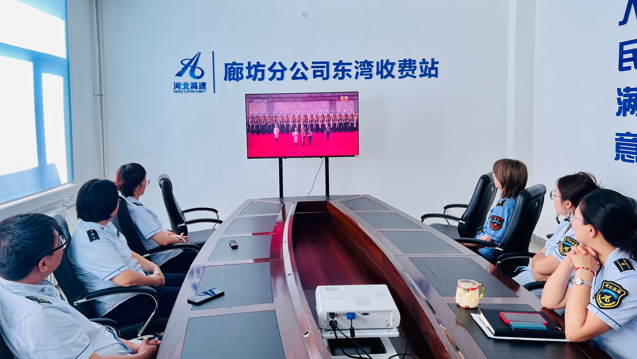 为纪念中国人民抗日战争暨世界反法西斯战争胜利80周年,9月3日上午,东湾收费站组织党支部全体在站干部职工集中收看了在北京举行的阅兵仪式实况直播。