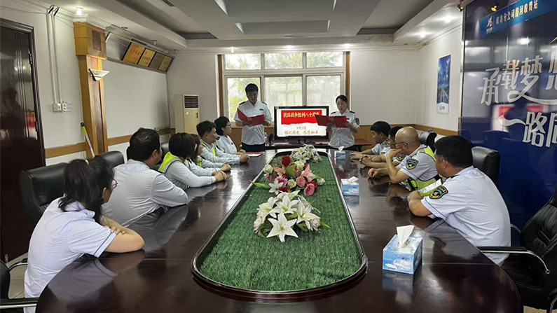 为积极响应“铭记历史 砥砺前行”主题系列活动号召,进一步厚植女职工的爱国情怀,在9月3日中国人民抗日战争暨世界反法西斯战争胜利80周年这个特殊的日子里,香河收费站精心组织开展了一场意义非凡的经典文献诵读活动。