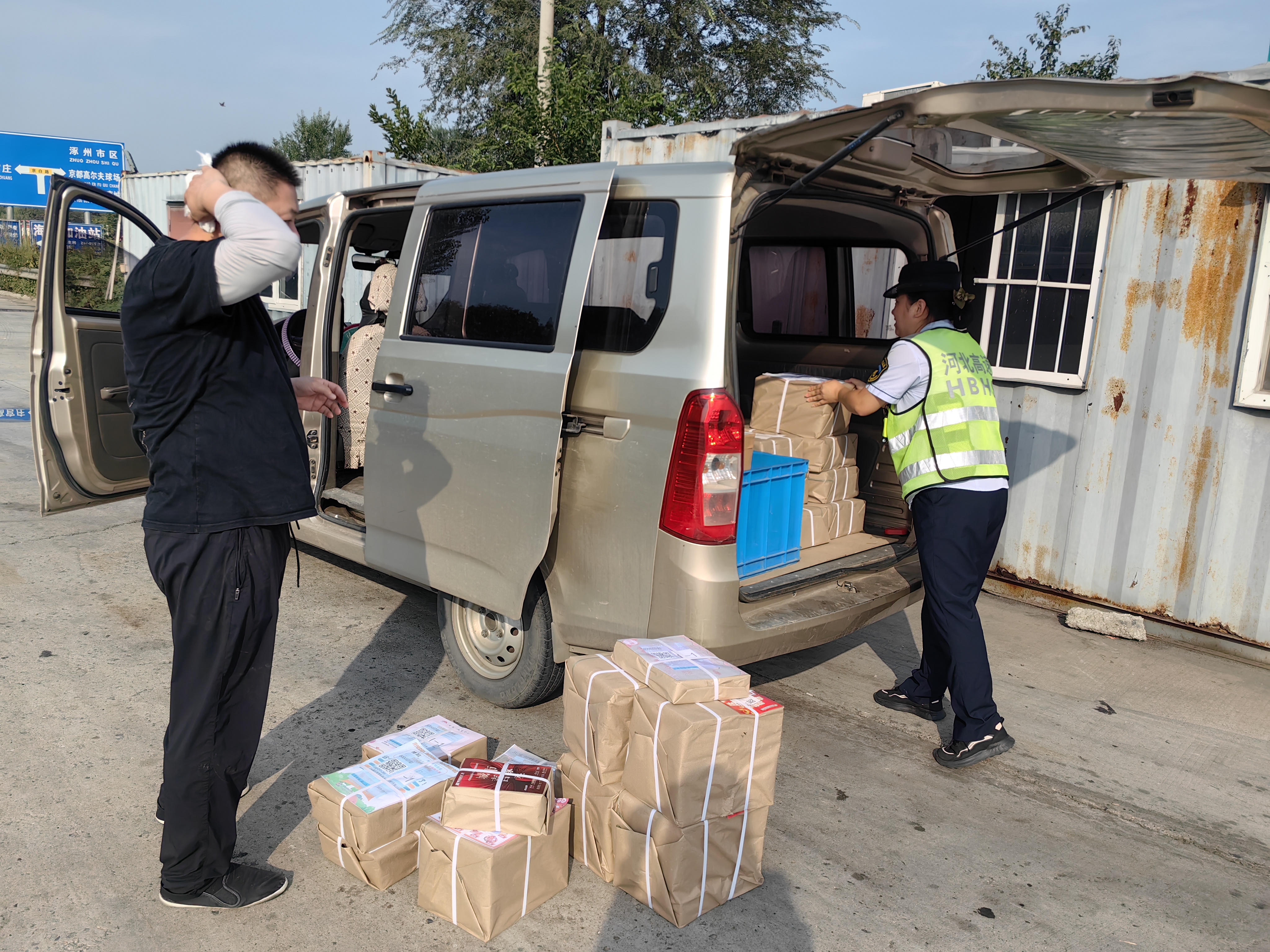 经了解,司机提前到达收费站等待拉货,可约定好的送货车却迟迟未到,正焦急等待。就在与司机交流过程中,送货车终于抵达,满满一地的货物被卸在地上。收费员赶忙上前和司机一起将零散的货物规整好,两人相互配合,把一个个包裹小心翼翼地往货车上搬。经过一番忙碌,所有货物都顺利装车,司机对收费员的热心帮助连声道谢。
