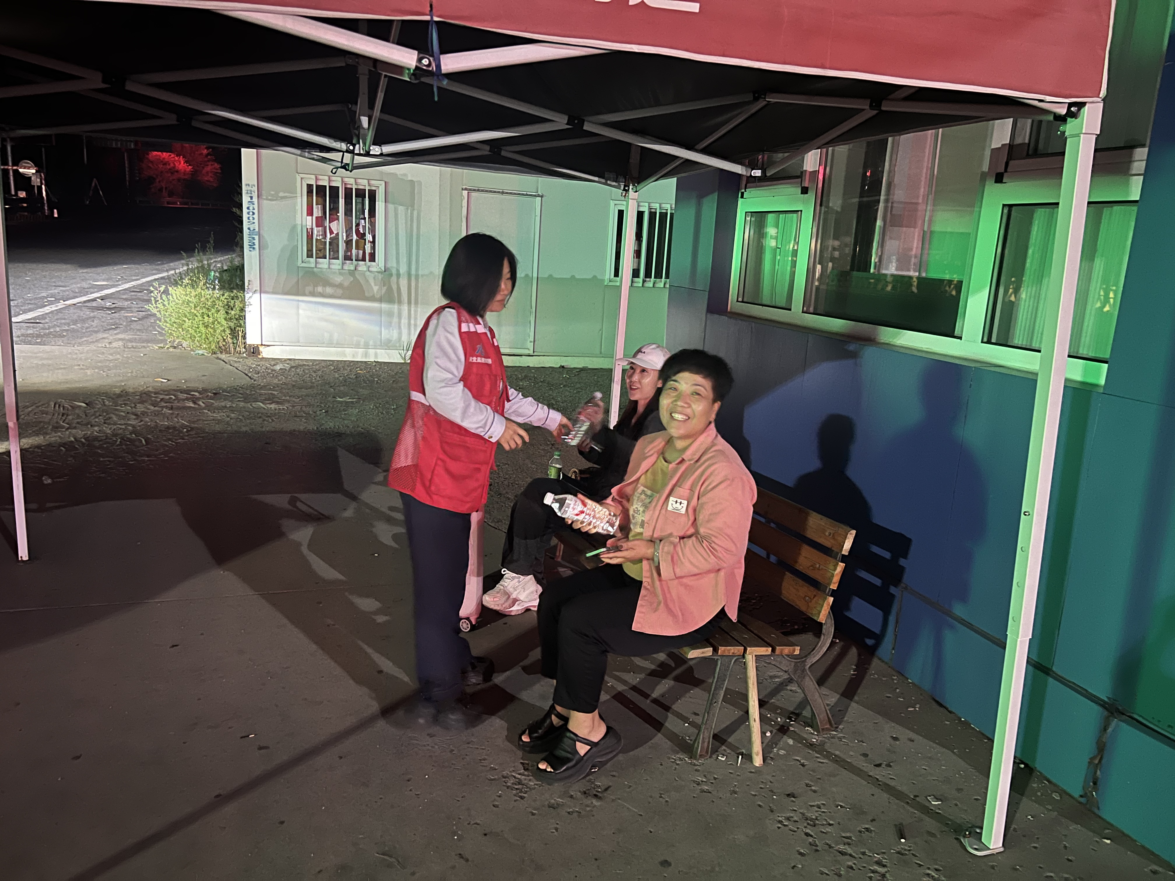 “阿姨,您别急,路况一有变化我们马上通知您,先喝口水歇会儿。”一句暖心叮嘱,驱散了秋夜的疲惫。与此同时,其他志愿者穿梭在人群中,耐心解答路况疑问、细致指引绕行路线,小小的服务点成为深夜里最温暖的港湾。