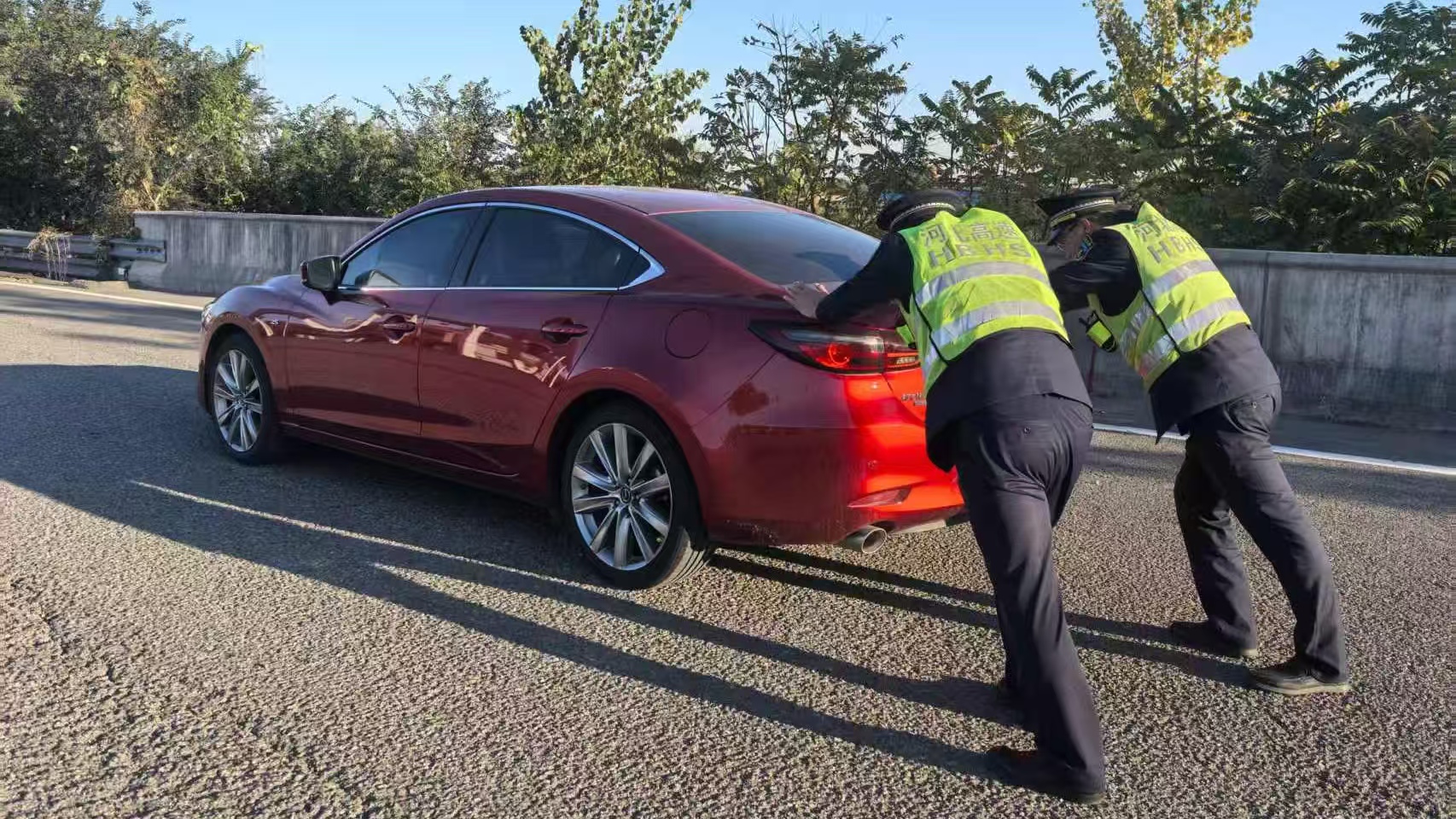 10月23日15时,一辆红色小客车驶入蒋福山收费站出口交费时突发熄火,多次尝试启动均失败。驾车女司机首次遇到车辆故障,面对后续来车手足无措,随即向现场收费员求助。收费员见状,立即通过对讲机向当班班长反应情况。班长迅速带领另一名备岗人员赶到现场,一边安抚女司机情绪,一边指明安全区域方向,随后两人合力在车后推车。仅用时5分钟,便将故障车辆安全转移至收费站外广场安全区域,快速恢复车道通行秩序。