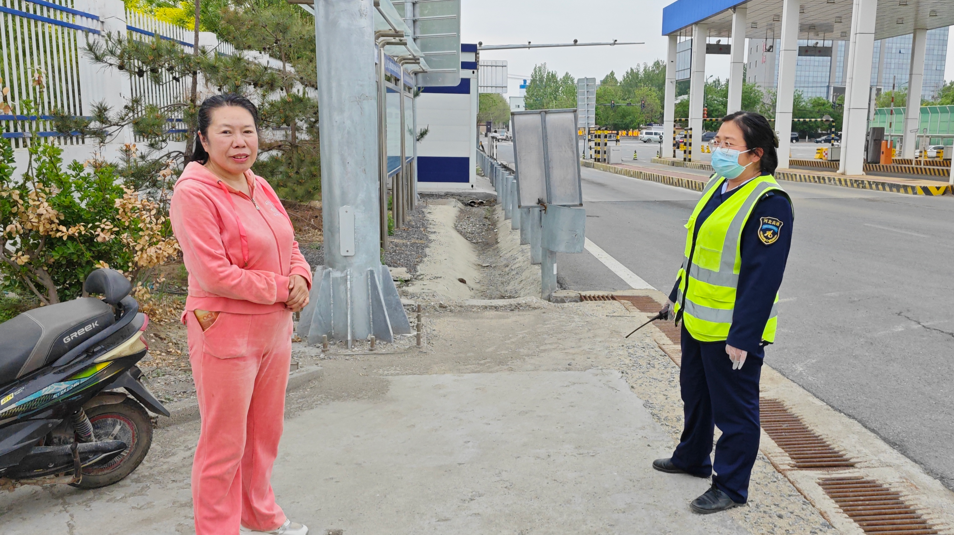 经了解,此人从燕郊前往近郊村落送货,途中因道路临时施工、导航信号中断,误闯入收费站周边车流密集区域,不仅无法确定绕行路线,更担忧车辆续航不足影响送货时效。见状,班长第一时间将其引导至站内便民服务室,递上温水安抚其焦虑情绪,同步对电动摩托车电量进行检查确认。