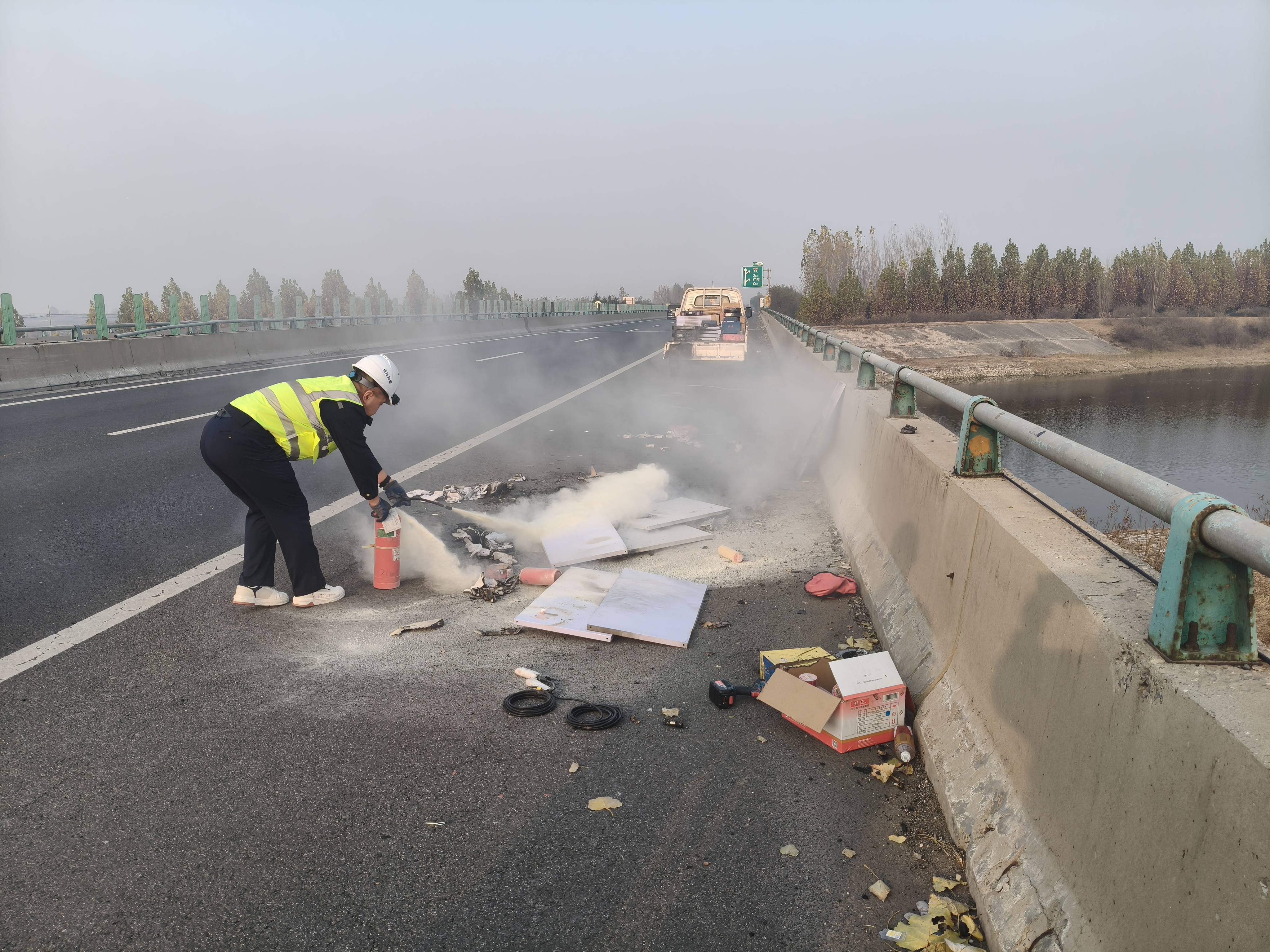 12月11日下午,廊坊分公司广阳保通保畅应急大队在例行巡查时,成功处置了一起车辆起火事故。