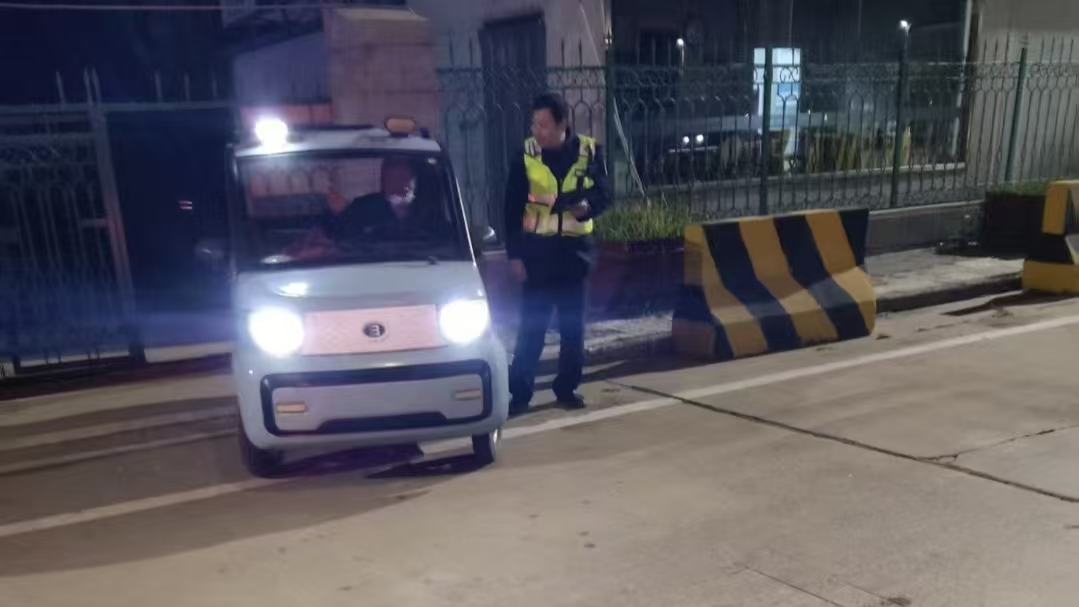 11月19日19时许,香河收费站当班班长齐保义在日常巡查中,发现一辆电动老年代步车正高速驶向高速入口车道,情况十分危急。为防范交通安全事故,齐保义立即上前挥手示意,迅速将车辆引导至安全区域。