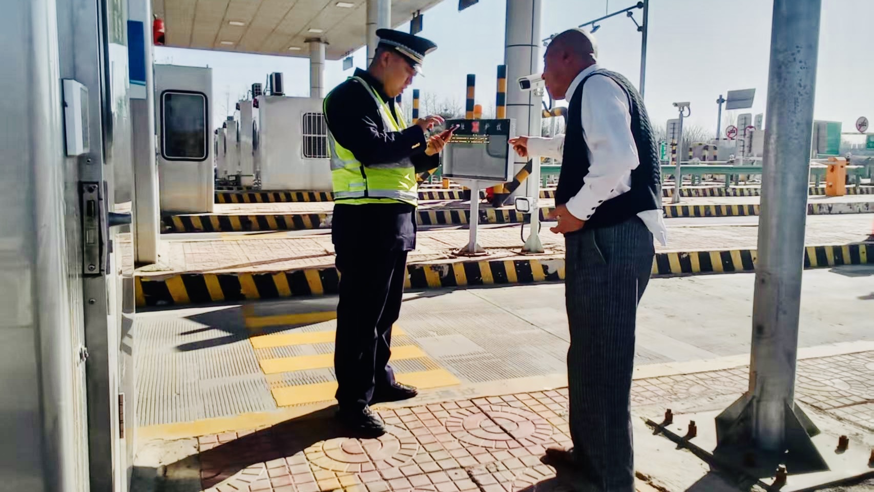 在东湾收费站,收费员的手指在手机屏幕上轻轻滑动,正仔细为一位司机设置导航路线。这样温馨的画面,每天都在这里重复上演。