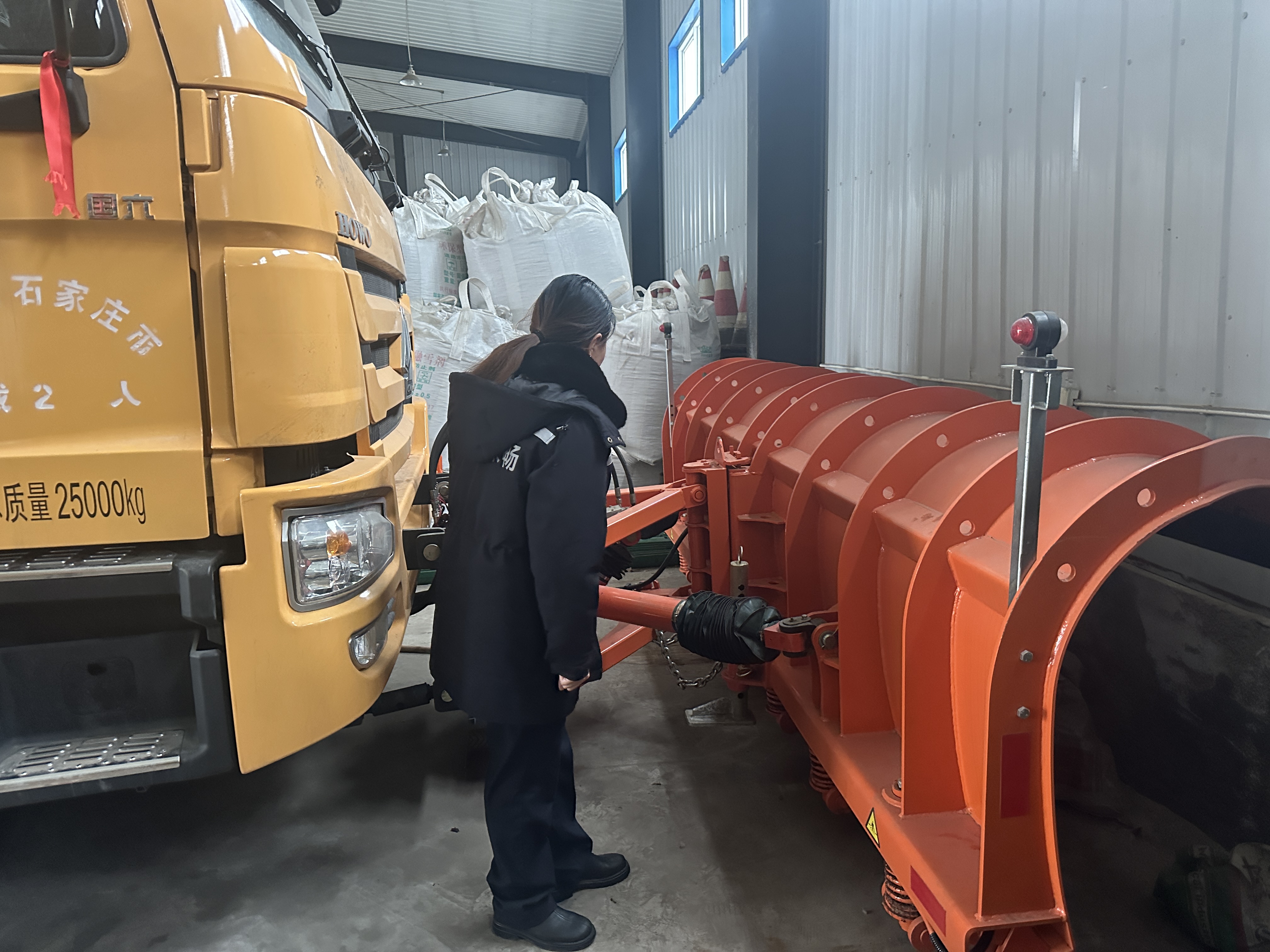 会后,养护中队迅速启动“实地核查+台账核验+现场推演”三位一体检查模式,聚焦“人、料、机、策”四大关键环节开展全链条隐患排查。物资保障上,严格核验融雪剂储备量是否满足两场大雪应急需求,逐一核对固态与液态融雪剂的存放点位、数量及保质期,确保“多点分布、就近调用”;设备性能上,不仅对除雪撒布车、铲雪车等应急装备的检修记录进行复核,更将车辆开至辖区重点路段开展路面实测——模拟积雪覆盖场景,测试除雪车铲雪板角度调节、推雪效率,检验撒布车融雪剂抛洒宽度、均匀度,同步要求操作人员现场完成设备启动、作业切换、应急停机等全流程实操,坚决杜绝“院内能转、上路抛锚”“静态完好、动态失效”问题;人员准备上,检查应急队伍分组情况与24小时值守排班表,通过现场提问检验人员对预案流程、“先通后净”作业规范的掌握度,同步明确路警联动对接机制;风险管控上,重点排查易积雪结冰桥梁、弯道的警示标识与防护设施,确保每处风险点都有专人负责、有措施应对。
