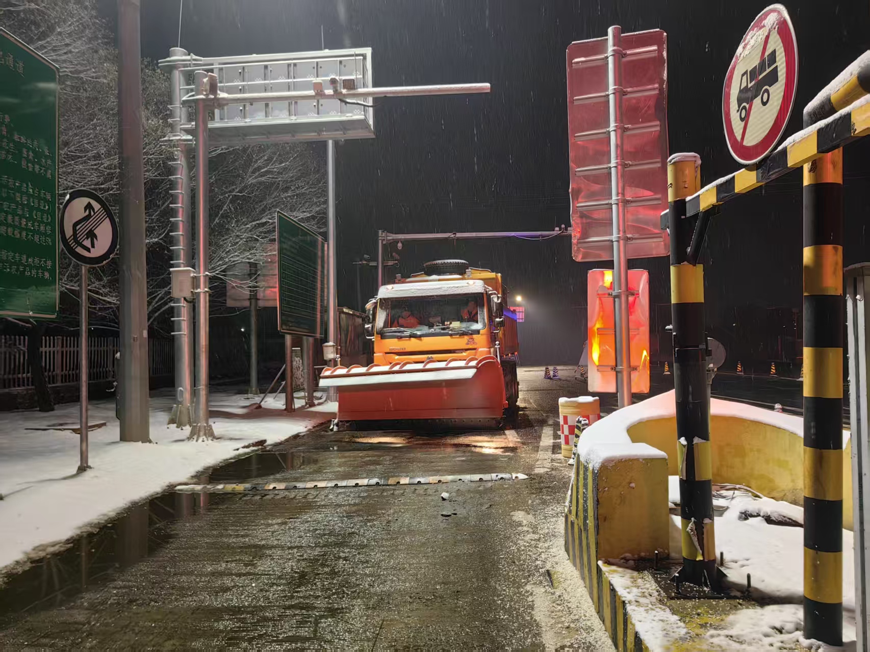 面对复杂的天气形势,广阳保通保畅应急大队闻令而动、迅速响应,第一时间启动除雪保畅应急预案。全体队员以雪为令、冲锋在前,开启24小时连夜奋战模式。在作业过程中,大队科学调配力量,累计投入除雪撒布车34台班,组织除雪作业人员150工日,消耗融雪剂230吨。针对桥梁、匝道、弯道等易结冰的重点路段,采取“机械除雪为主、人工清理为辅、融雪剂精准撒布”的作业方式,全力开展除雪保畅作业。