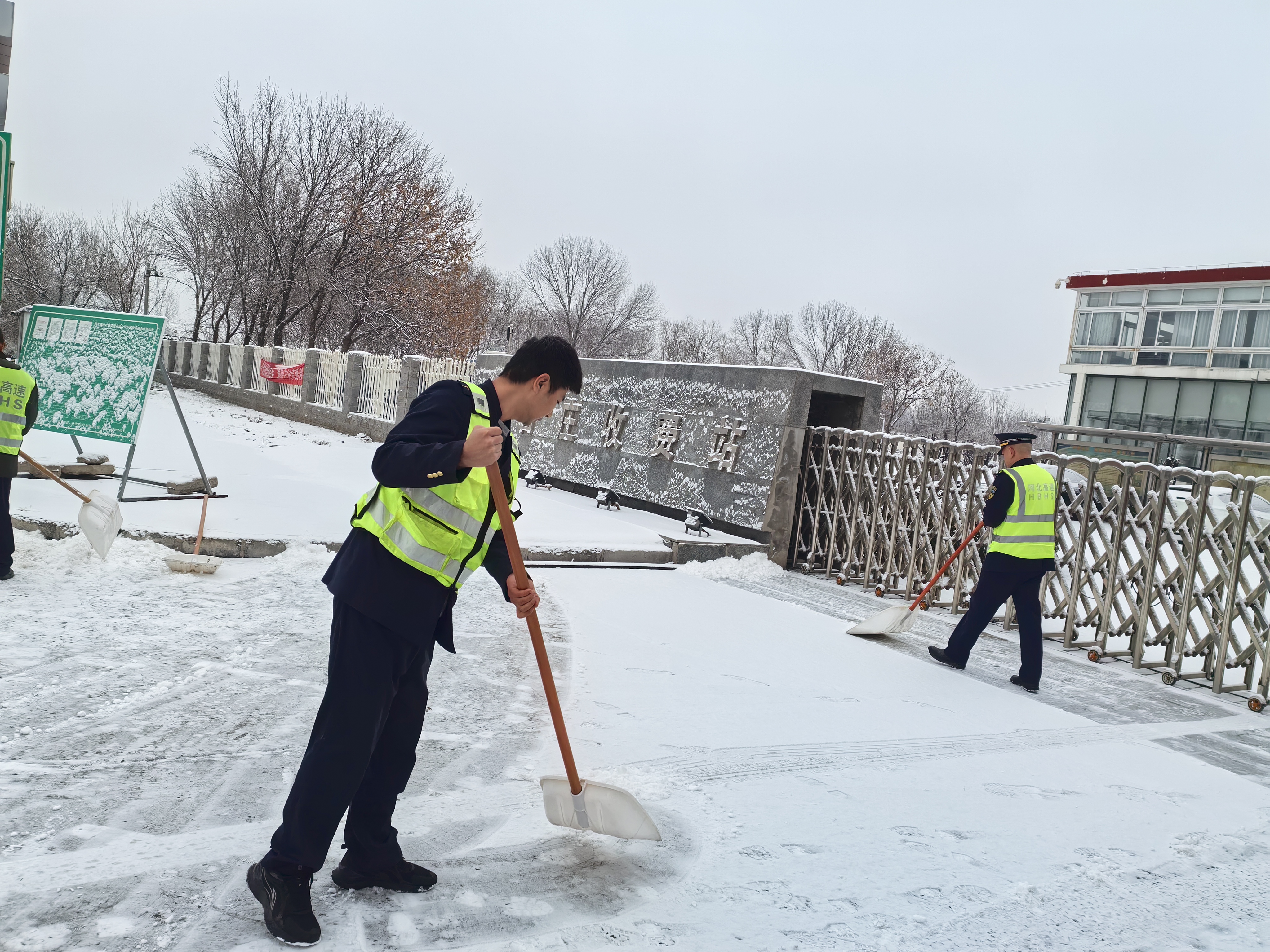 雪情就是命令,畅通就是责任。12月13日7时左右,面对降雪天气,高官庄收费站迅速响应,第一时间启动除雪保畅应急预案,全体在站职工闻令而动、火速集结,全力以赴投入到除雪保畅工作中,为司乘人员安全出行保驾护航。
