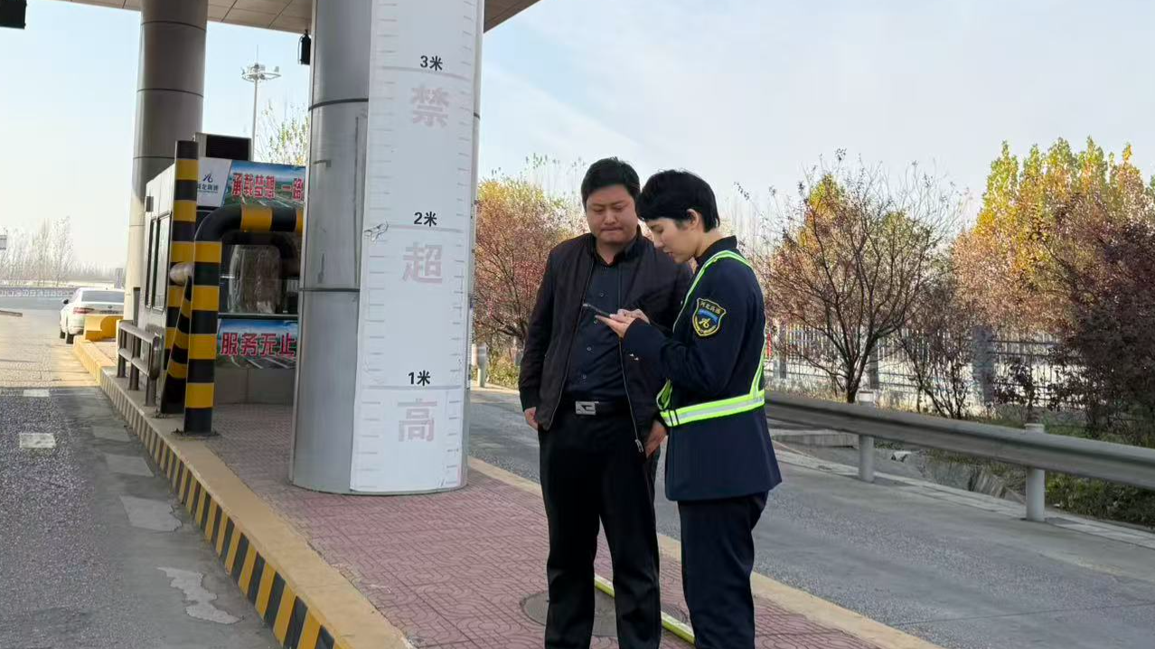 12月27日,一辆小客车驶离三河东收费站出口车道后,停在出口广场。随后,司机神情焦急地跑向收费岗亭。当班收费员发现后,立即将司机引导至安全地带,并通知值班人员前来了解情况。值班人员赶到后,主动上前询问。