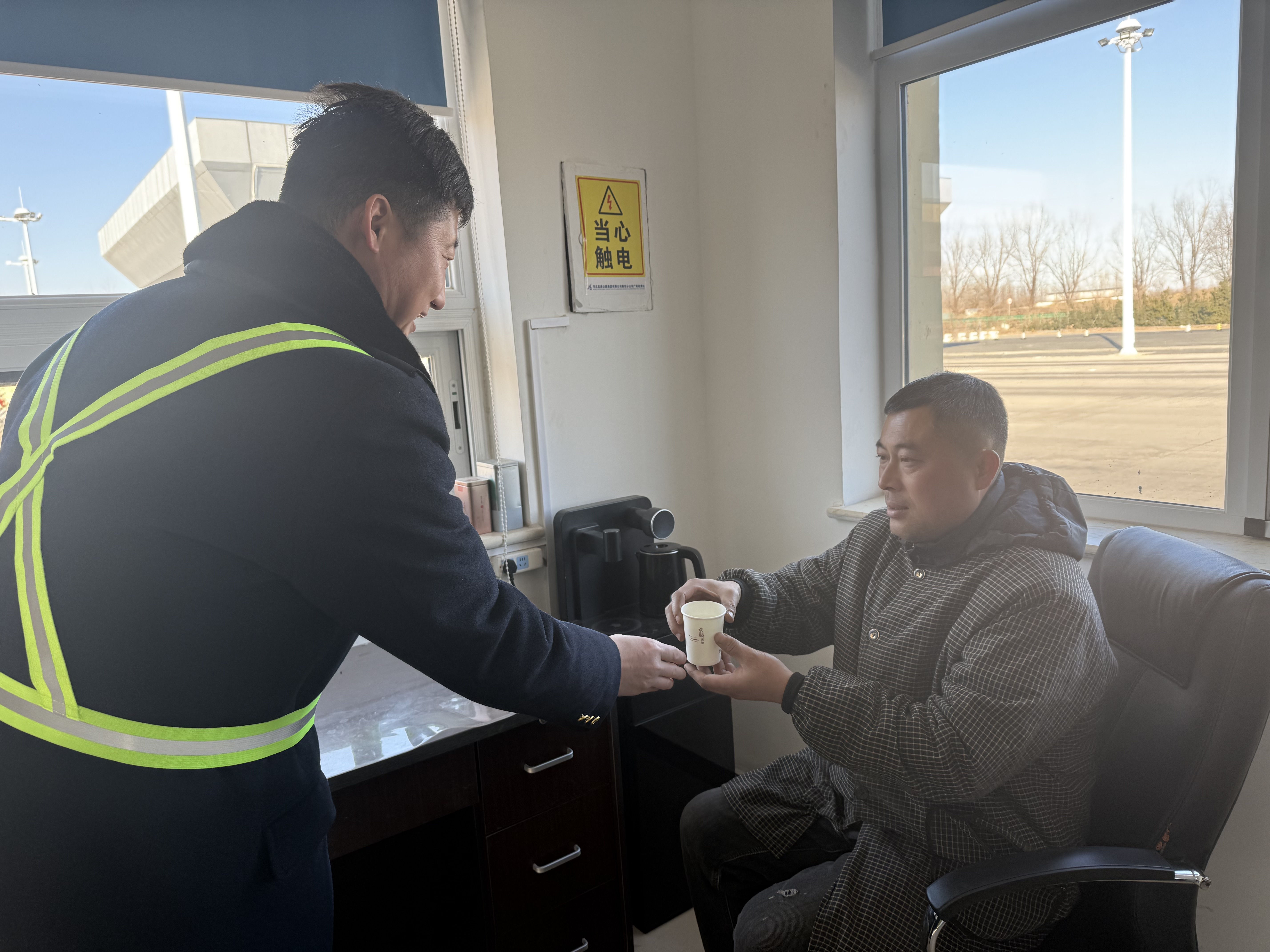 正在现场执勤的当班班长发现情况后,第一时间上前询问具体情况。在得知车辆报警无法正常行驶后,他主动协助司机打开车辆前机器盖,拔出机油尺仔细检查,快速判断出故障原因为车辆机油不足。考虑到天气寒冷,班长一边安抚司机焦急的情绪,引导其前往值班室休息取暖,并贴心送上热水;一边迅速联系附近的修理厂,详细说明车辆故障情况与具体位置,协调救援人员赶赴现场。