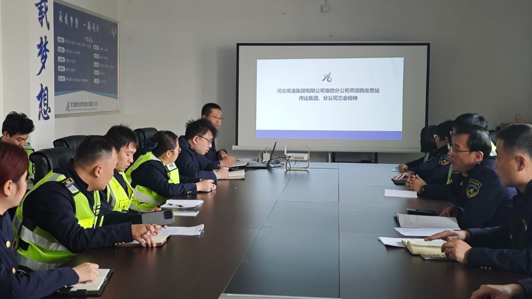 1月15日,燕郊西收费站全面传达学习集团公司、分公司“三会”精神,系统解读会议核心要义与实践要求,部署贯彻落实具体举措,全体干部职工参会。
