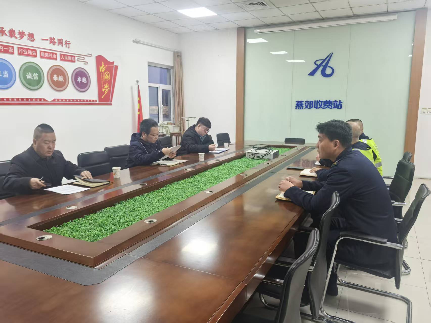 2月3日傍晚,廊坊分公司副总经理到燕郊收费站督导“春节”“春运”期间安全生产等工作,分公司运营管理部副部长等陪同。 督导组一行先后检查了收费现场、综合办公区以及职工食堂、发电机房、地源热泵房、水泵房等重点安全部位,随后召开专题会议,听取了站长近期重点工作开展情况汇报。