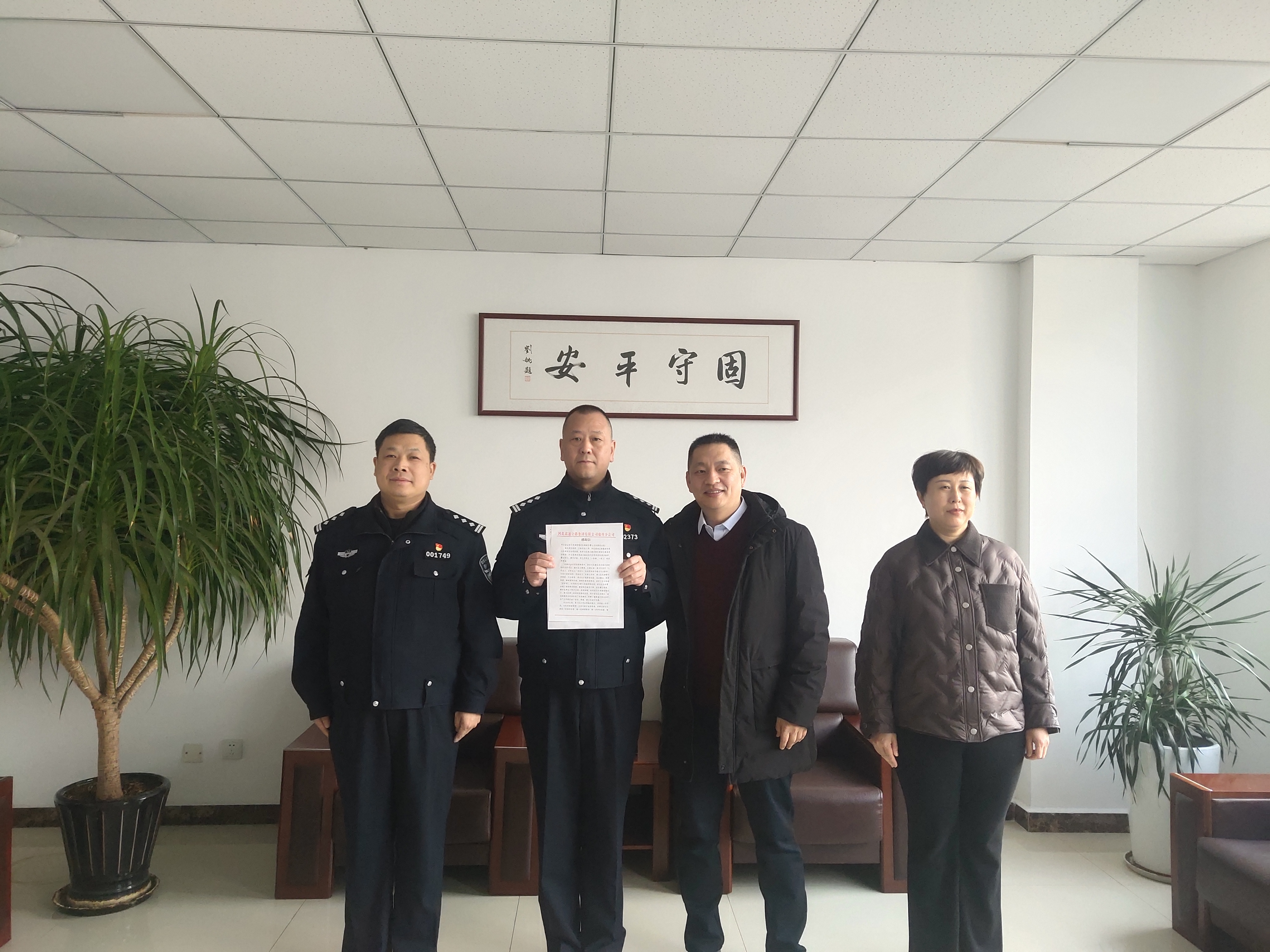 为进一步深化路警联勤联动机制,切实加强春运期间高速公路安全保畅工作,2月10日,廊坊分公司总经理杨亮带队,副总经理和运营管理部主要负责人一行到省交管总队七支队固安大队走访慰问。