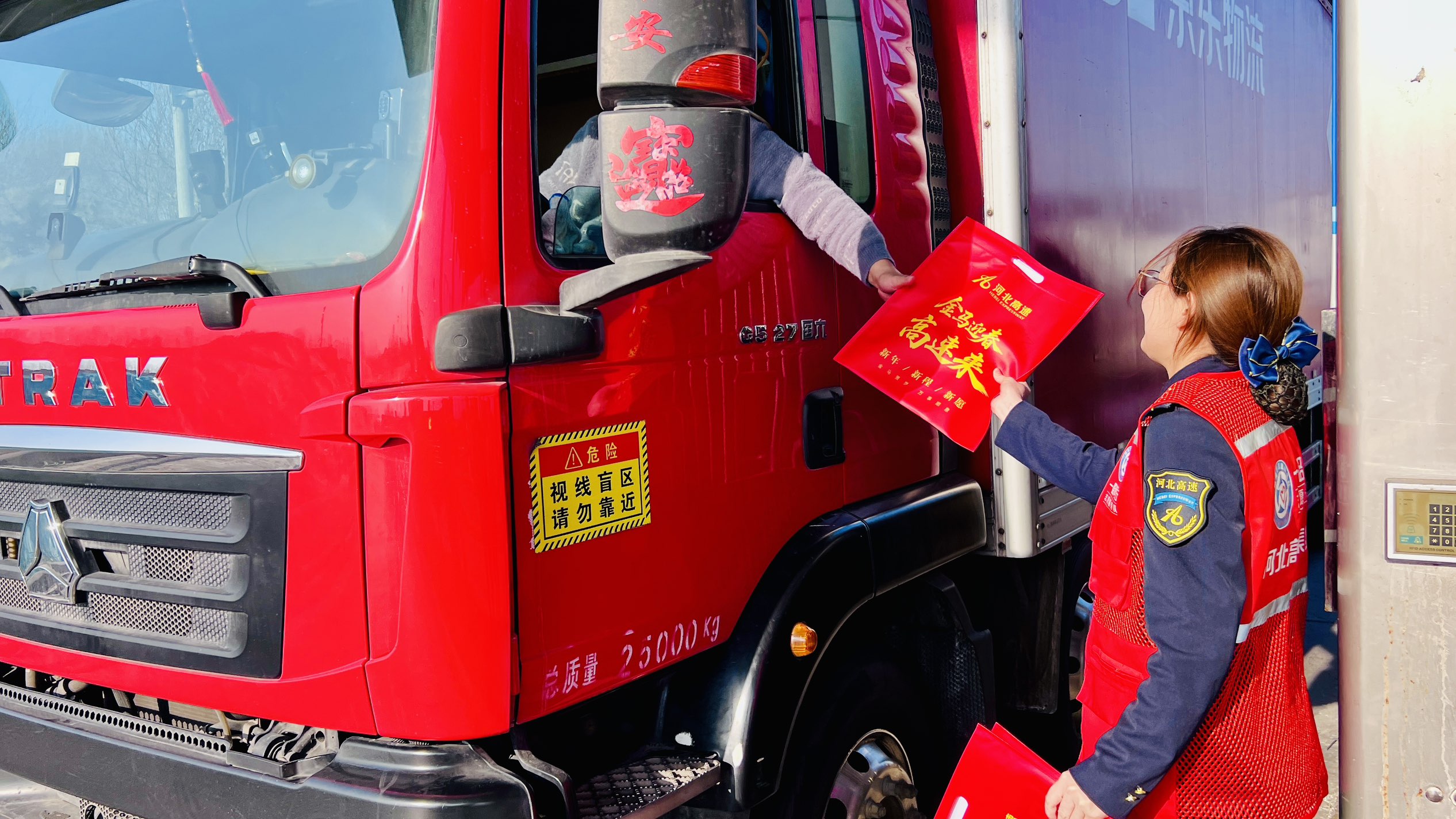 节前,站区全面整治环境卫生,挂起灯笼、贴上福字,年味一下子浓了起来。活动当天,收费员们换上整齐制服,手拿新春礼包,笑着递给过往司机:“小年安康”“一路平安”“马年大吉”——一句句实在的问候,一副副红彤彤的春联,让赶路的人停了车也暖了心。