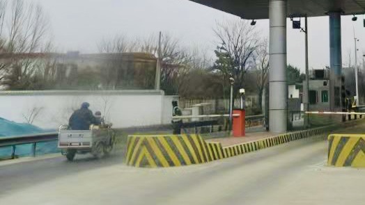 3月30日9时许,一对老人骑着三轮车试图从东湾收费站入口车道驶入高速。当班班长发现后,立即快步上前将其截停。