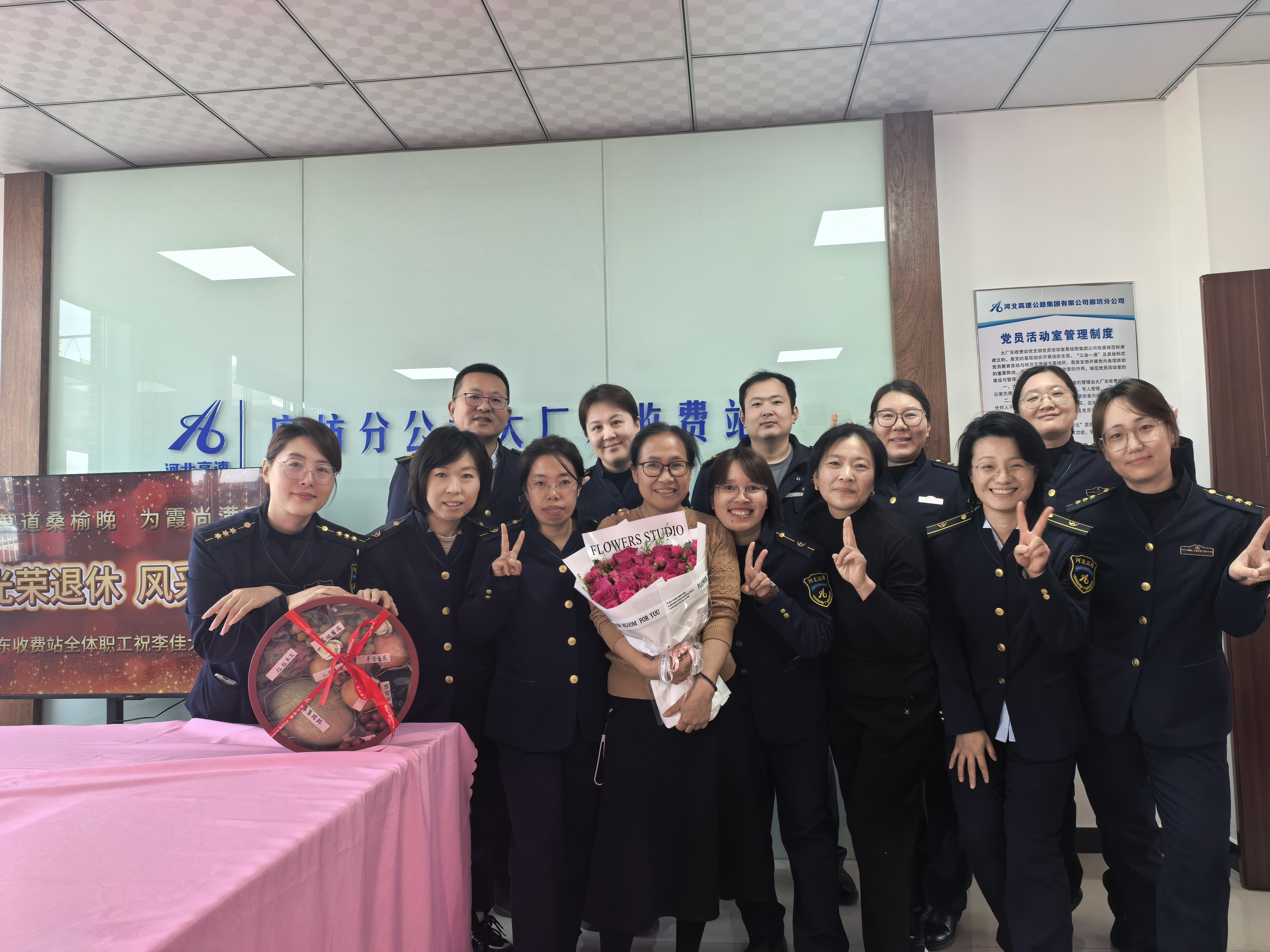 阳春三月,草长莺飞。廊坊分公司大厂东收费站为陪伴大家十载春秋的食堂厨师李佳举行温馨退休欢送仪式,全体在岗职工齐聚相送,鲜花与祝福交织,满含对这位“暖心大姐”的不舍与敬意。