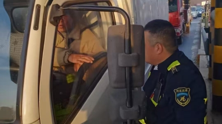2025年11月21日,在蒋福山收费站入口,一辆长途车辆缓缓停下,司机摇下车窗,向称重岗亭招手求助。[详细]