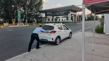 10月6日10时许,国庆值岗期间,疏导员发现入口广场处停留一辆小汽车,且并未靠边停驶,发现这一危险情况,疏导员立即上前询问。 [详细]
