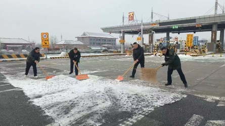 昨夜大雪纷飞,为确保站区安全畅通,今日清晨,齐心庄收费站领导率先垂范,带领前勤一线收费员、各班组班长、副班长以及全体备岗人员,投入到紧张的扫雪除冰工作中。[详细]